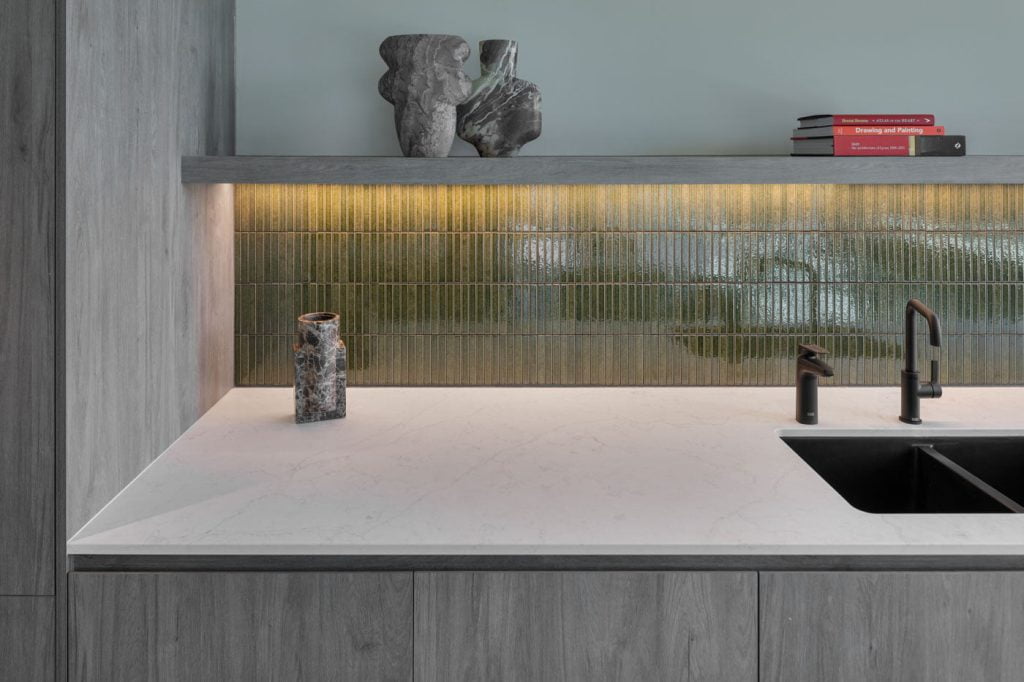 Como: A contemporary expression of urban chic, featuring walnut finishes and subtle industrial edge. Lighting plays a key role in this language, enhancing both materiality and movement. Rather than concealing the building’s monolithic concrete columns, the design team chose to celebrate them – allowing their structural presence to define the rhythm and flow of the space. This raw honesty is balanced by softer architectural gestures – textured surfaces, timber accents, and sinuous curves. Integrated LED lighting shapes form and softens transitions, while smart lighting control systems further reinforce the project’s commitment to sustainability and occupant wellbeing – both key pillars in Charter Hall’s vision for this significant asset.