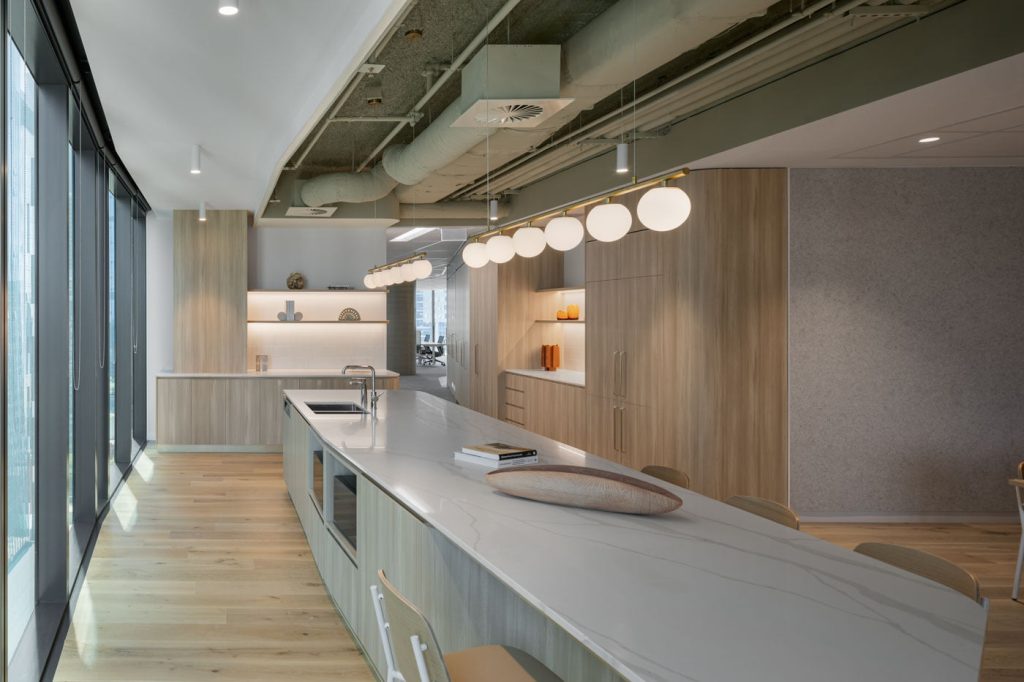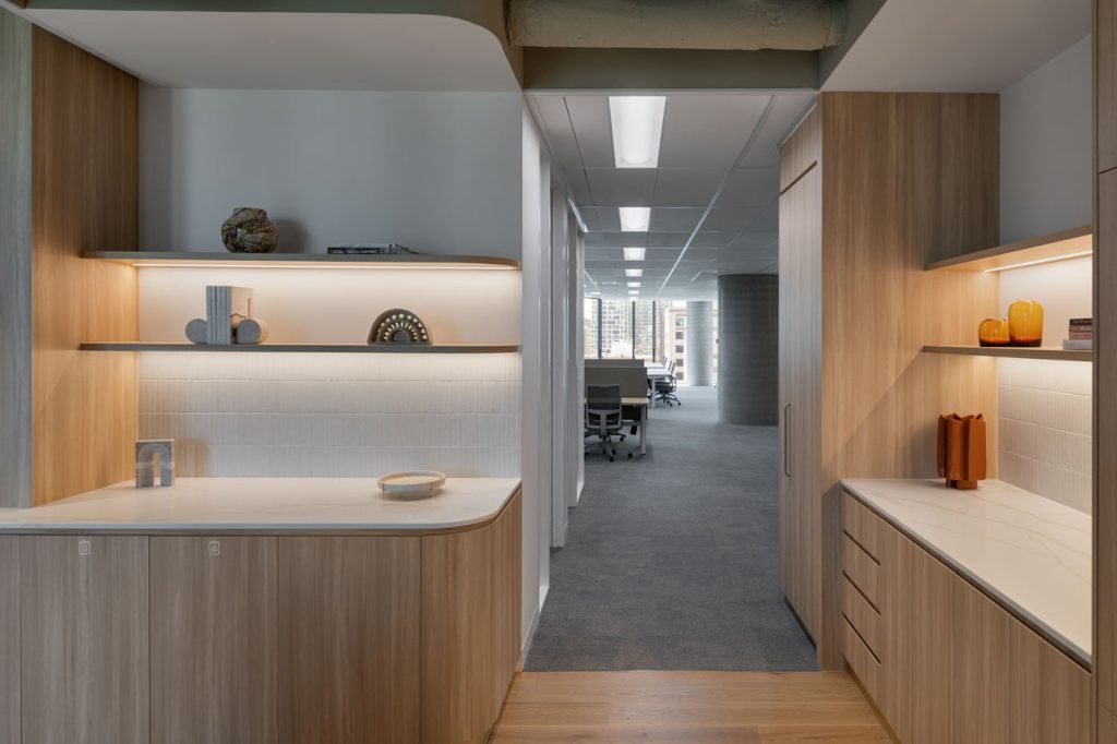 Designed by Studio 103, the Speculative Suites on Levels 6 and 20 are a pair of uniquely styled commercial floors totalling 2,900m² – each responding to Melbourne’s eclectic urban personality. Drawing inspiration from the city’s laneways, boutique hotels and wellness culture, the fitout delivers four distinct tenancies – Elba, Hazel, Savoy, and Como – each with its own material palette and spatial identity: