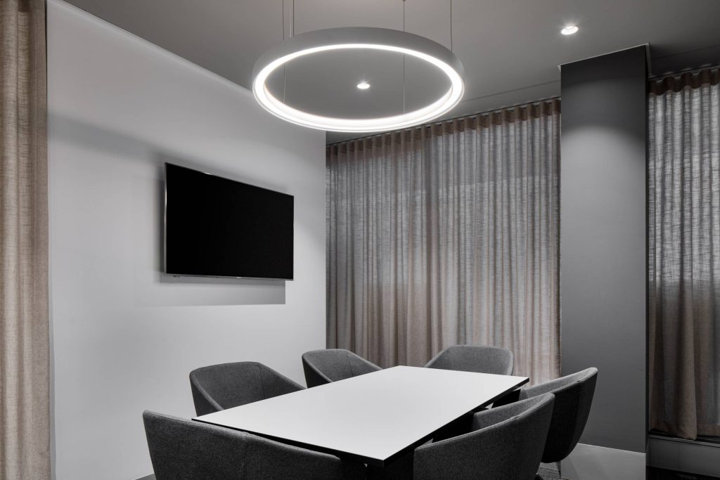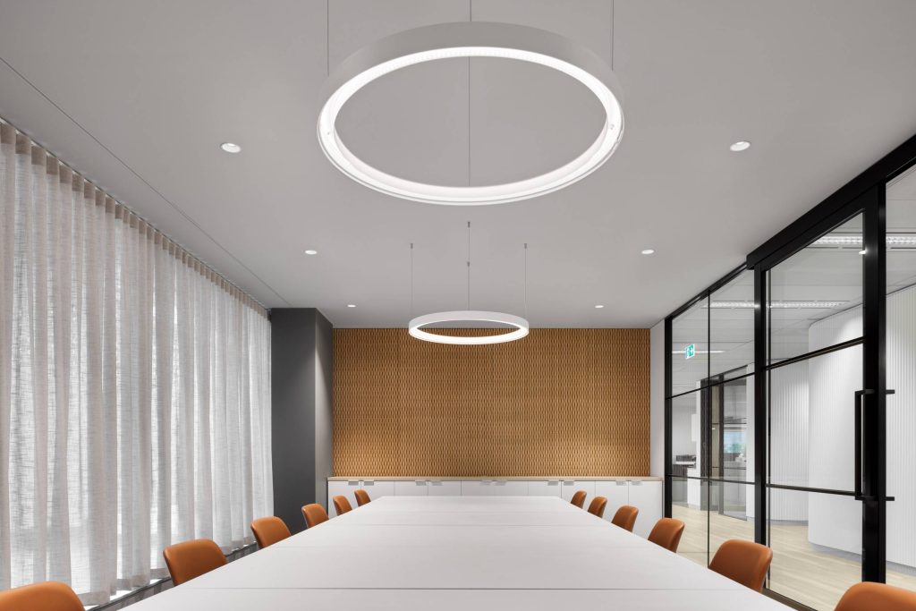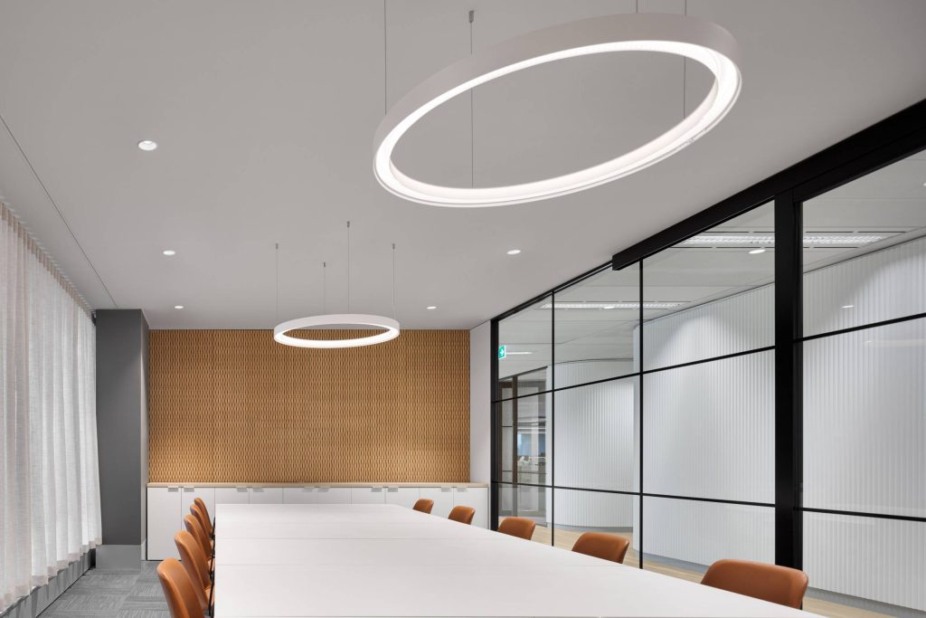 The AMBIENT RINGS used in the boardroom on this tenancy are available in five standard diametres for quick specification, but custom sizes up to 8m in diametre, as well as another variant with a separate indirect lighting channel, also present no problem. The linear SLIM C pendants selected here by Aston Consulting Group, represent a great economical office lighting solution, and are our most supplied extrusion profile product. A great team effort resulting in a smooth handover to a happy client!