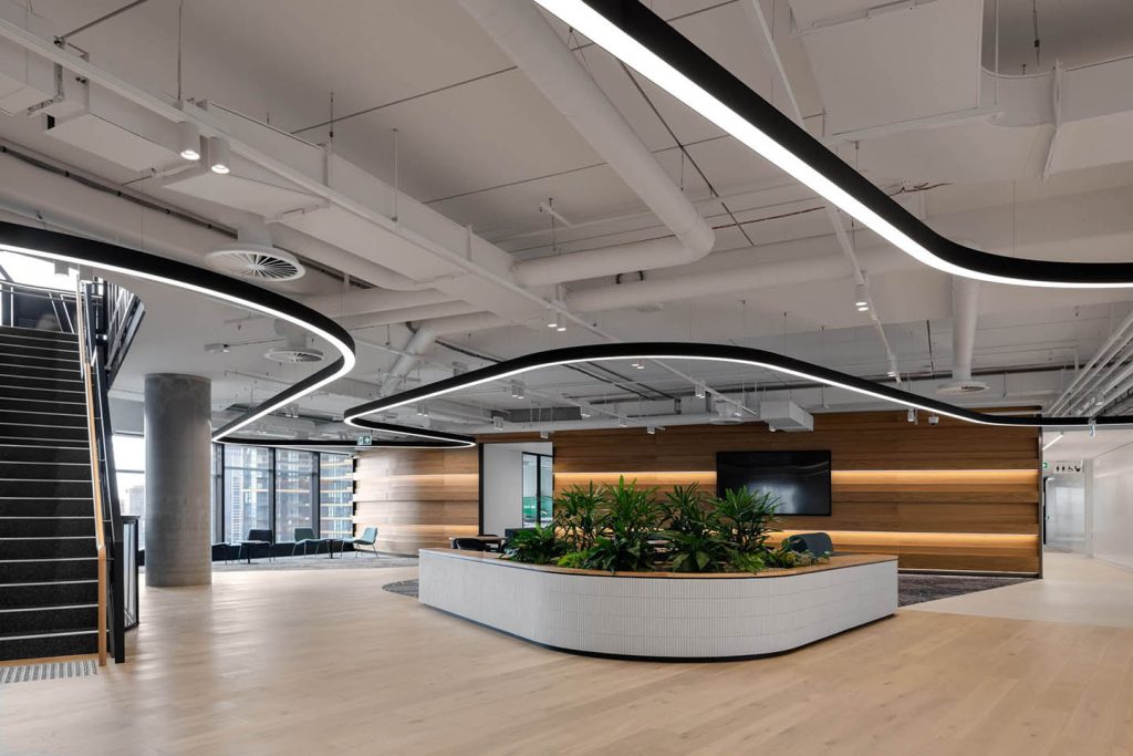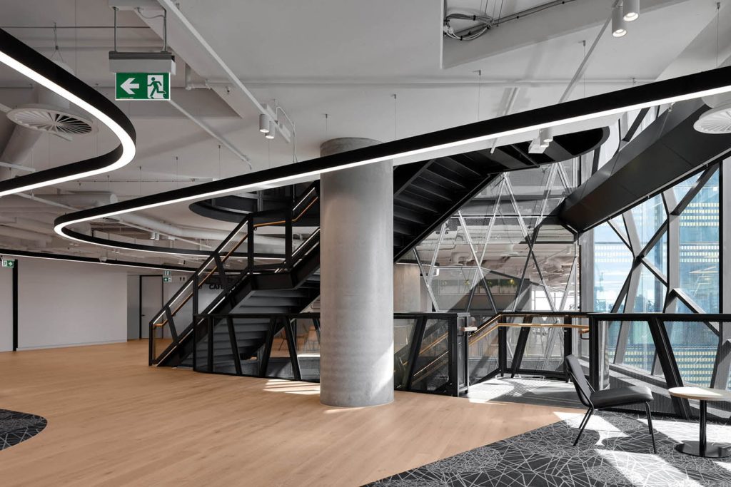 In creating the agile, collaborative workplaces required, Geyer’s architectural direction inspired NDYLIGHT to deliver an exemplary and innovative lighting design. The main feature is a continuous, curved, suspended profile element, MRS T RADII, which measures a staggering 147m in uninterrupted length, making it the longest single light DARKON has ever fabricated! A great result and another challenging luminaire design delivered as documented.