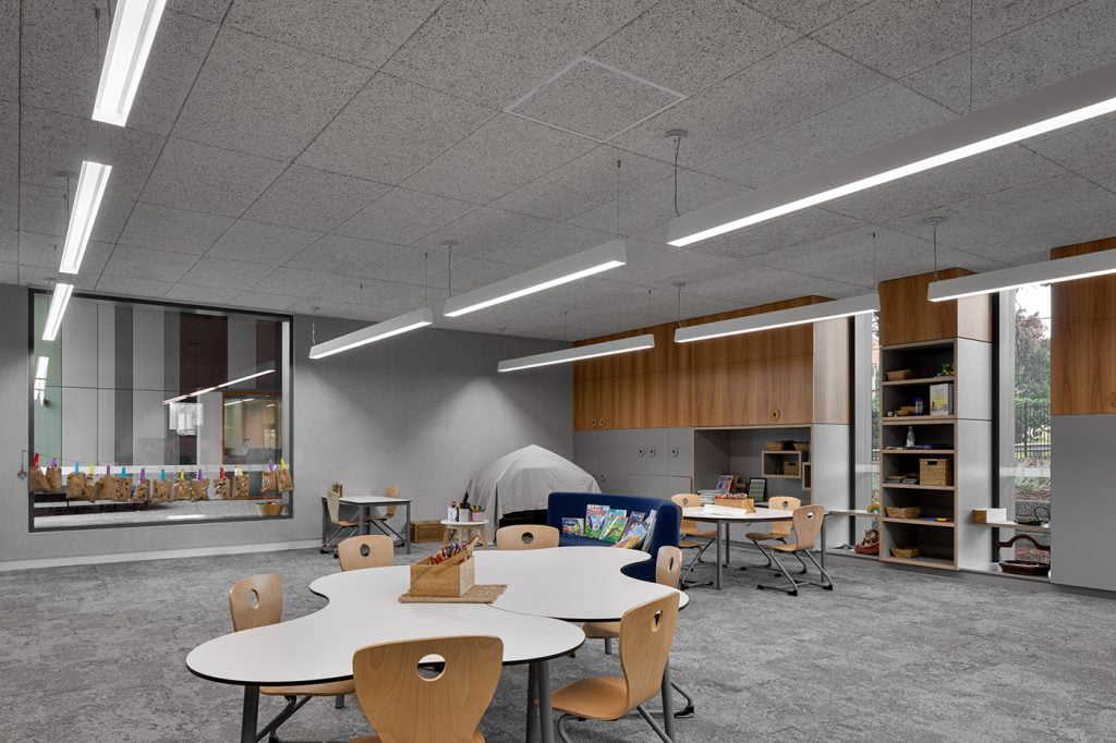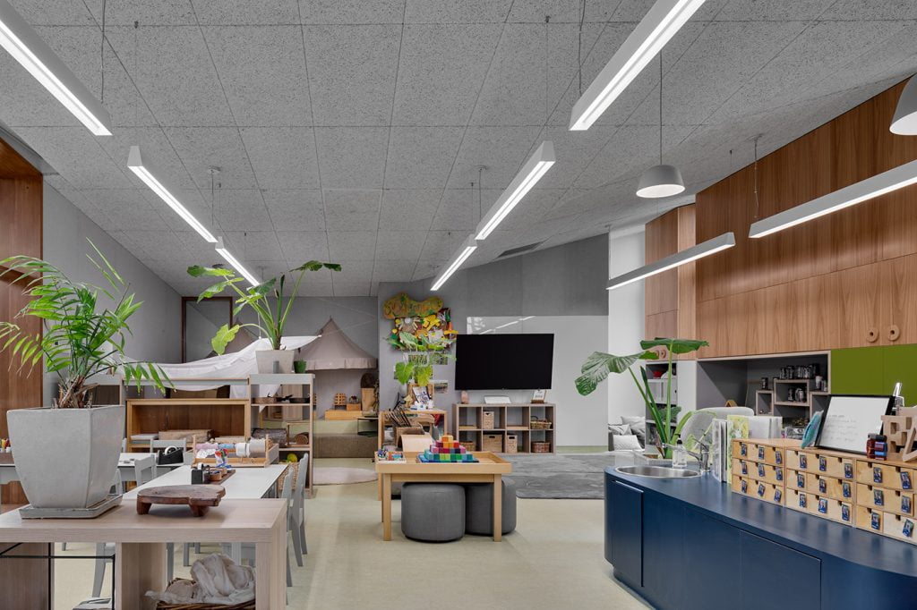 Working alongside the Wardle design team, including Chloe Lanser, Diego Bekinschtein and Jeff Arnold, DARKON was engaged to deliver a lighting solution to support their masterplan – and a quantity of 265 x MINI SKIRT SUS linear pendants at fixed lengths of 2m & 2.8m were used in an imaginative design response. The set out of the light fittings is designed to allow the many classrooms to be joined or separated as dictated by activities being conducted at the prestigious educational institution.