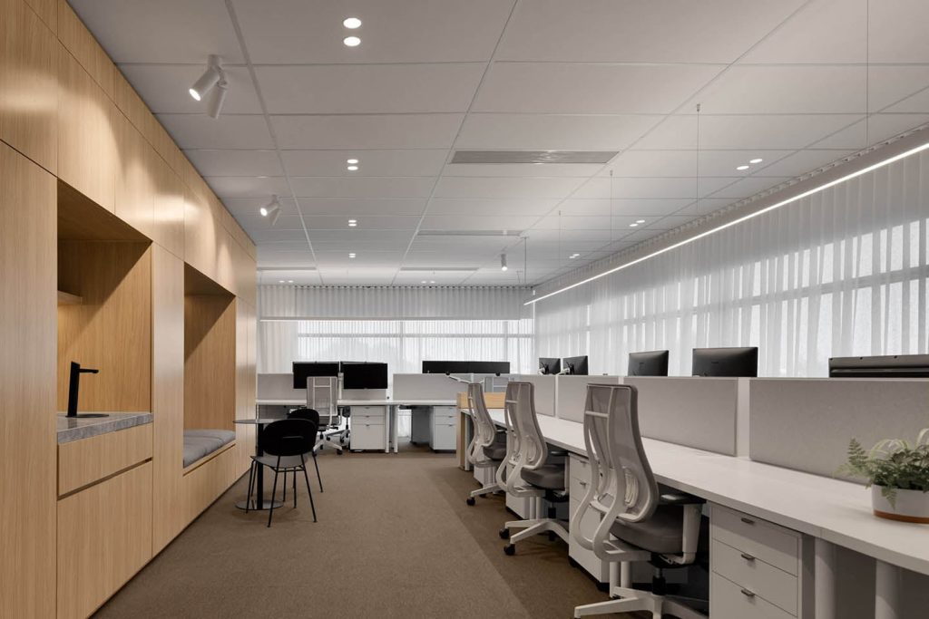 In the working office space, a series of GRAZER H profiles are arranged neatly above the desk layout and provide beautiful direct/indirect illumination for staff members working beneath. The smaller scale of this DARKON extrusion, selected by Director, Michael Davis, is used to great visual effect as the linear lighting becomes more subtle and complementary to all other elements within the contemporary architectural workplace design. A great project to collaborate on and deliver for a long term and valued client.