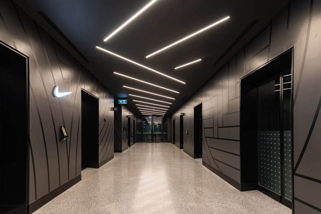 A Hassell designed fitout for Nike’s new Melbourne head office located at 161 Collins Street was an amazing project to work on with an inspired project team. Delivery of a resoundingly slick aesthetic which truly captures and reflects the essence of the brand attitude for this international big hitter was a pleasure for Darkon to collaborate on with specialist lighting consultant NDYLight and builder MPA. The realisation of the company’s fun-loving corporate culture through the Hassell interior intent reveals facets of the multinational brand in ways that delight and inspire at every turn.