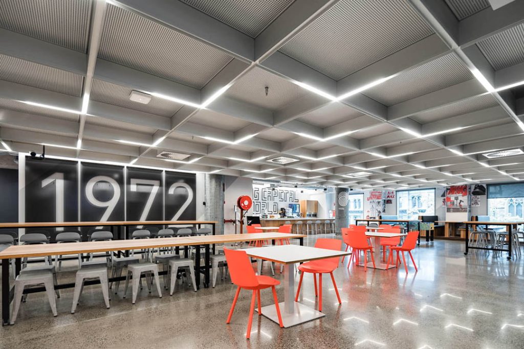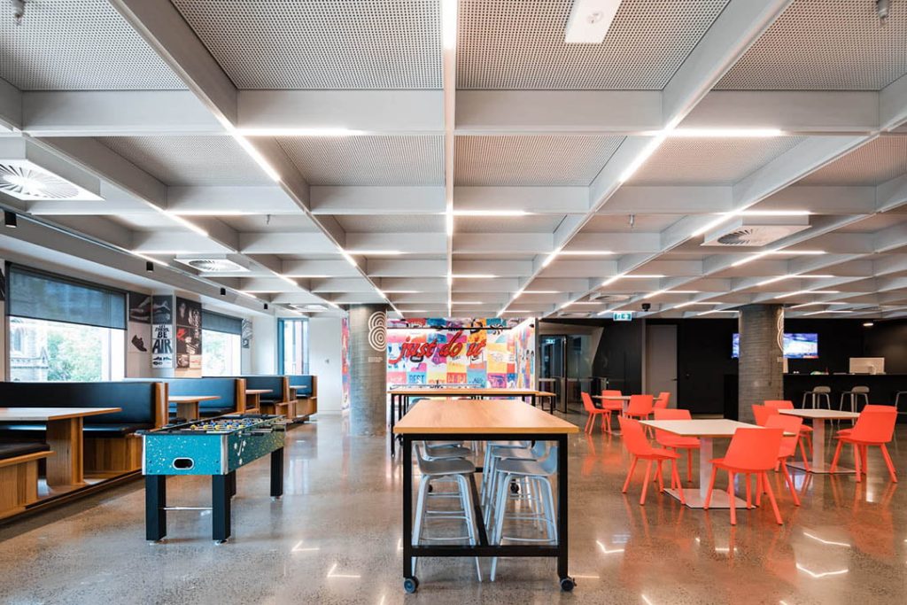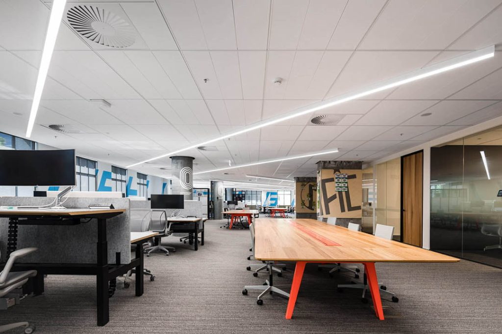 Expertly coordinated lighting installation by Surenet Solutions allowed for a fast turnaround of a large quantity of fully customised luminaires for the entire fitout, including entry and lift lobbies, meeting rooms, workstations, informal collaboration areas and casual breakout spaces complete with ping-pong tables!
