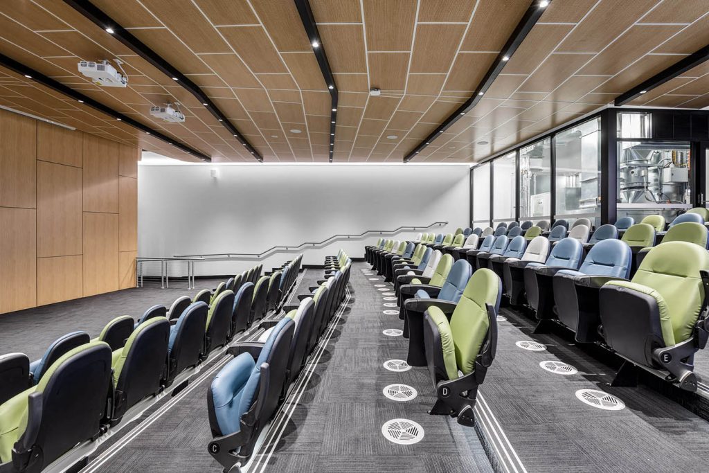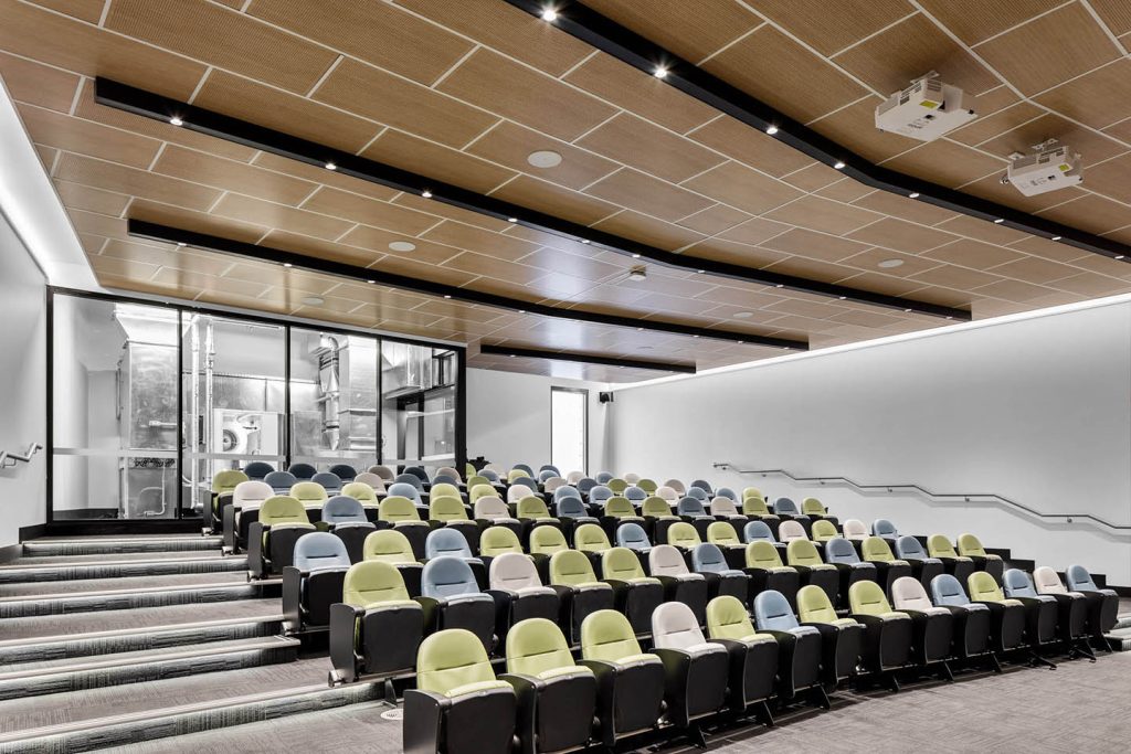 Some products featured in the design included DEEP DOWN recessed downlights, TUBE SUS linear extrusion, MRS.T supplied with a custom configuration including DOWNLIGHTS for the lecture theatre ceiling, AMBIENT RING decorative pendants and SLIM C SM in common areas.