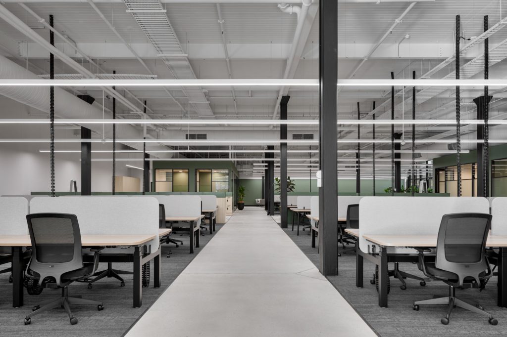 Head contractor Plan Group played a key role in the transformation, converting 3,000m² of cold shell space into four tenancy fitouts of spec suites through an Early Contractor Involvement (ECI) model, with electrical work carried out by Elecflight.